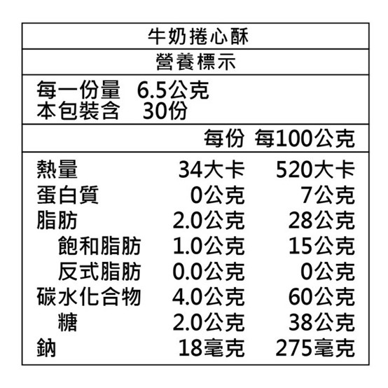 ● 經典好吃的牛奶口味捲心酥